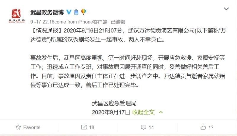 尽管后续万达文旅项目管理公司与受害者家庭达成了一致的赔偿。